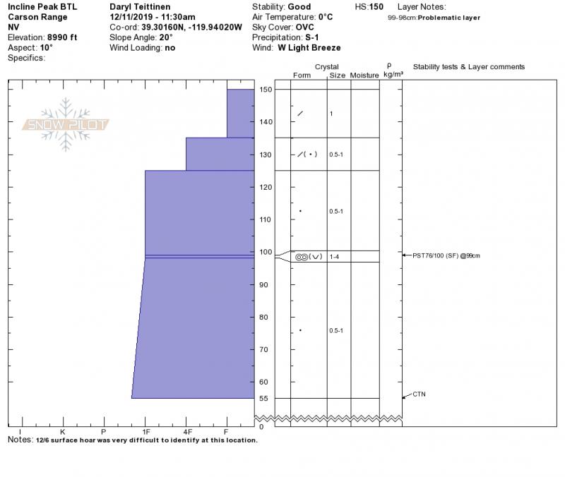Location Name: Incline Lake Peak Region: Mount Rose Area Observation Date & Time: Wednesday, December 11, 2019 - 11:30 |