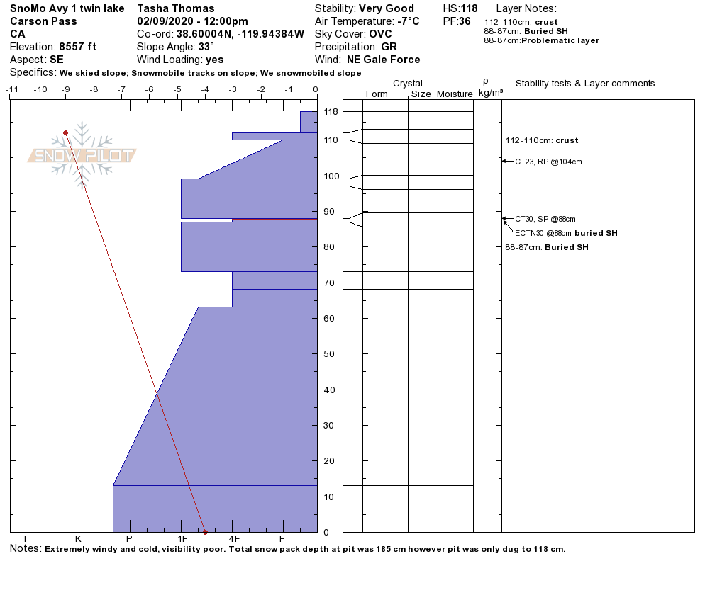 Location Name: Twin Lake Region: Carson Pass Area Observation Date & Time: Sunday, February 9, 2020 - 12:15 |