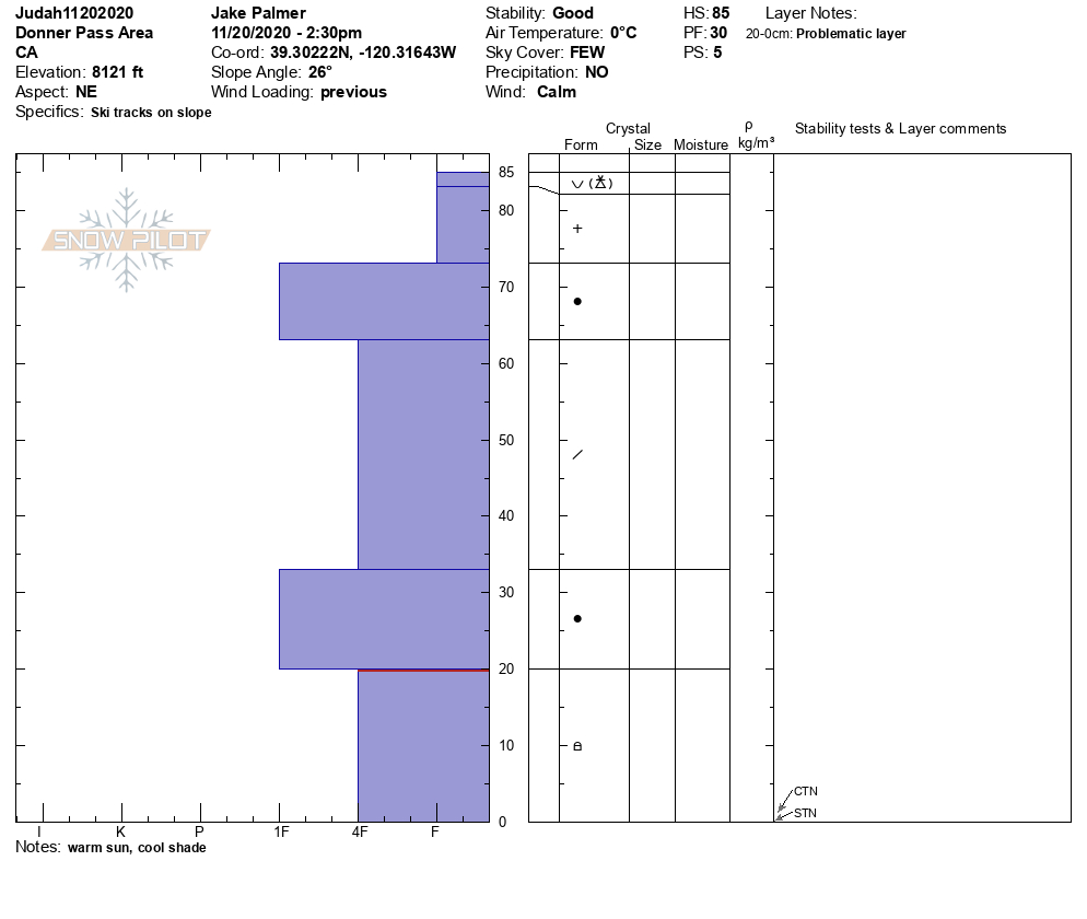 Location Name: Mt Judah Region: Donner Summit Area Observation Date & Time: Friday, November 20, 2020 - 02:30 |