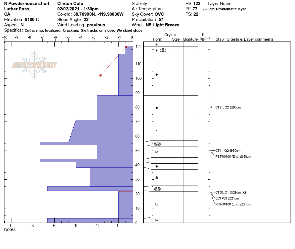 Location Name: Powderhouse Region: Luther Pass Area (including Job and Freel) Observation Date & Time: Tuesday, February 2, 2021 - 13:30 |