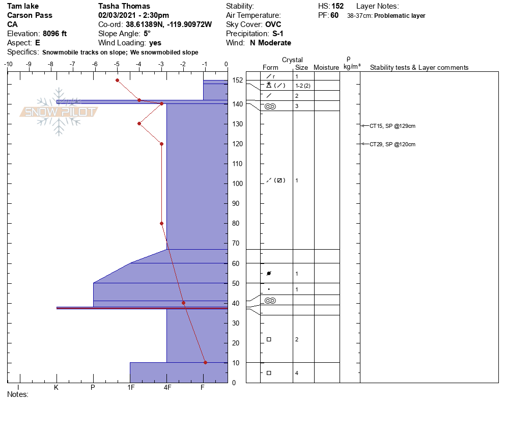 Location Name: Tamarack Lake Region: Carson Pass Area Observation Date & Time: Wednesday, February 3, 2021 - 14:30 |