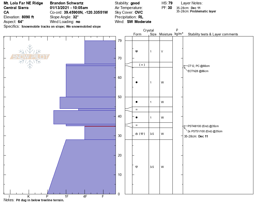 Location Name: Mt. Lola Region: Independence Lake Area Observation Date & Time: Wednesday, January 13, 2021 - 10:00 |