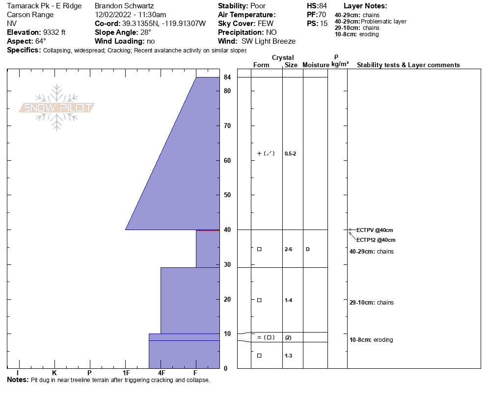 Location Name: Tamarack Peak Region: Mount Rose Area Observation Date & Time: Friday, December 2, 2022 - 11:30 |