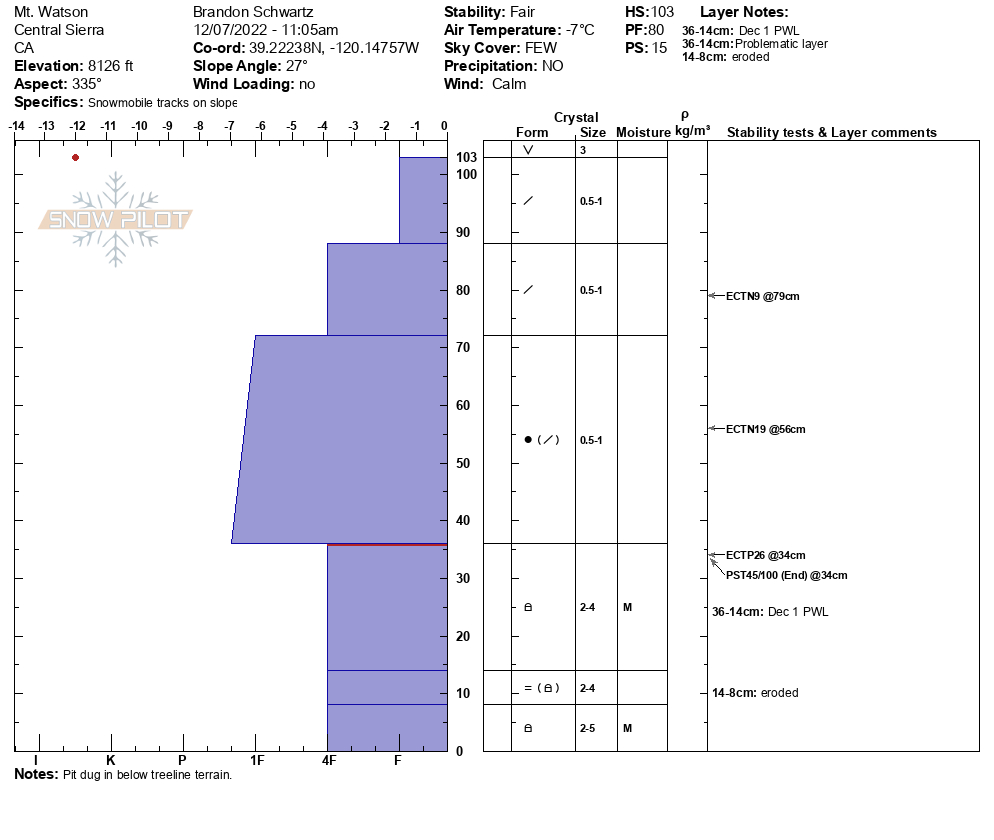Location Name: Mt. Watson Region: Sawtooth Ridge to Tahoe City Observation Date & Time: Wednesday, December 7, 2022 - 11:00 |