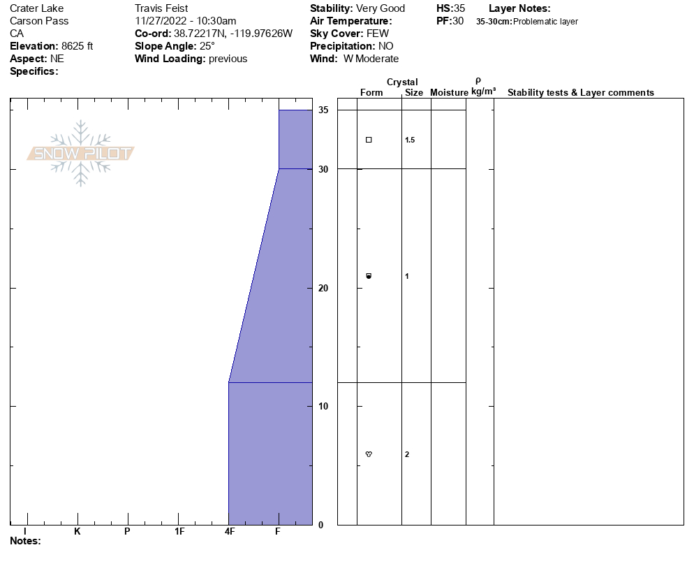 Location Name: Crater Lake Region: Carson Pass Area Observation Date & Time: Sunday, November 27, 2022 - 10:30 |