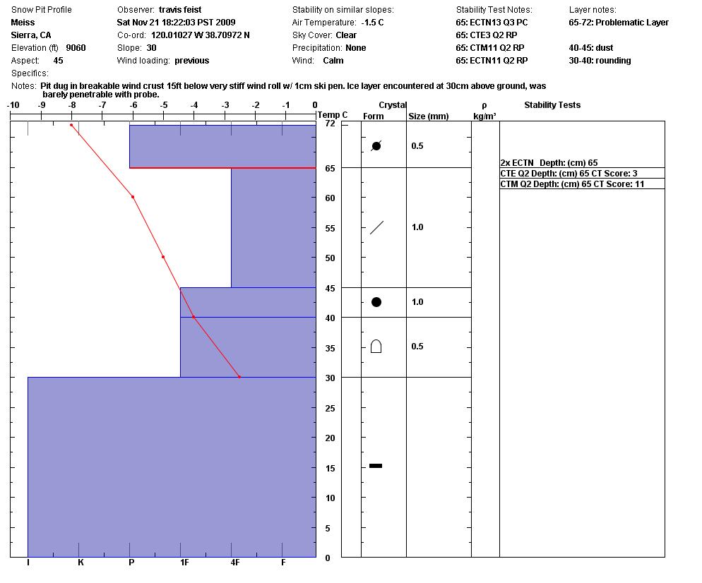 Location Name: Meiss Ridge Region: Carson Pass Area Date and time of observation: Sat, 11/21/2009 - 18:22 |