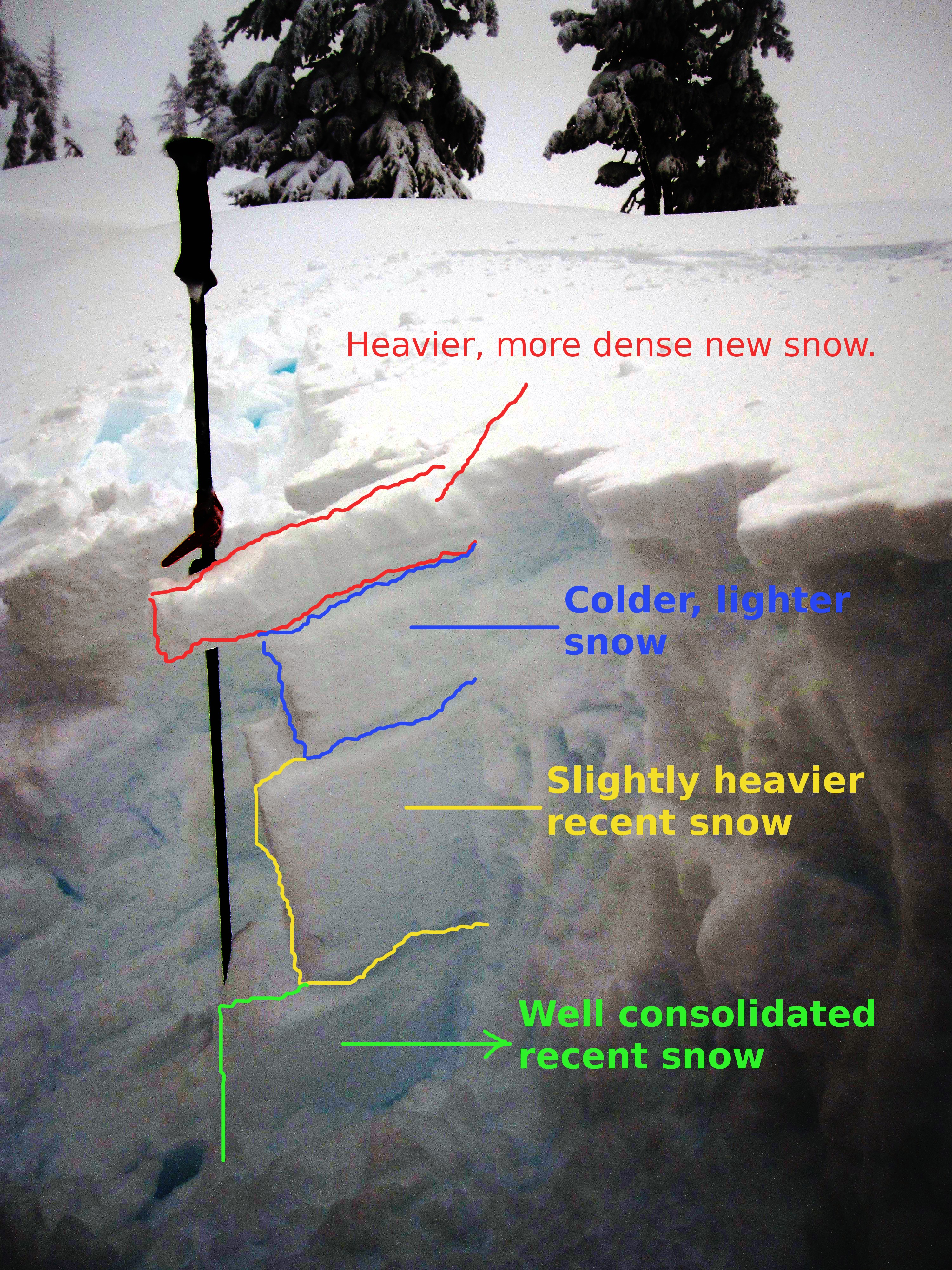 Red Flags: Recent loading by new snow, wind, or rain |