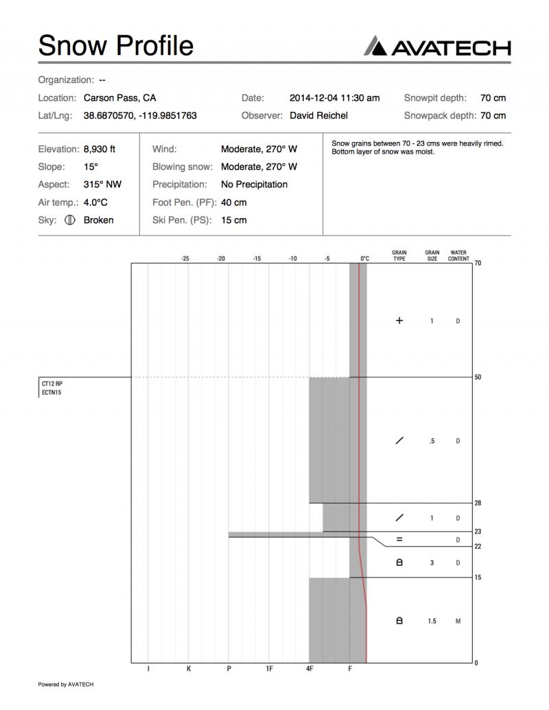 Location Name: Frog Lake Region: Carson Pass Area Date and time of observation: Thu, 12/04/2014 - 11:30 |