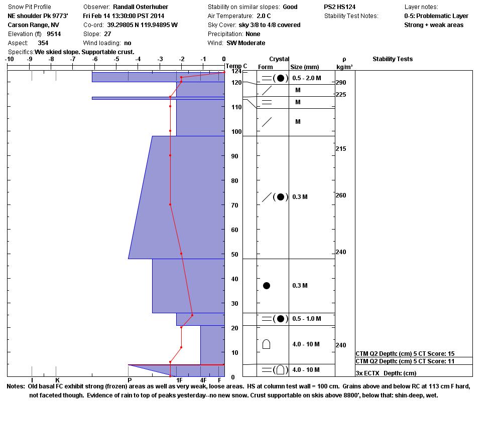 Location Name: NE shoulder Pk 9773' Region: Mount Rose Area Date and time of observation: Fri, 02/14/2014 - 13:30 |