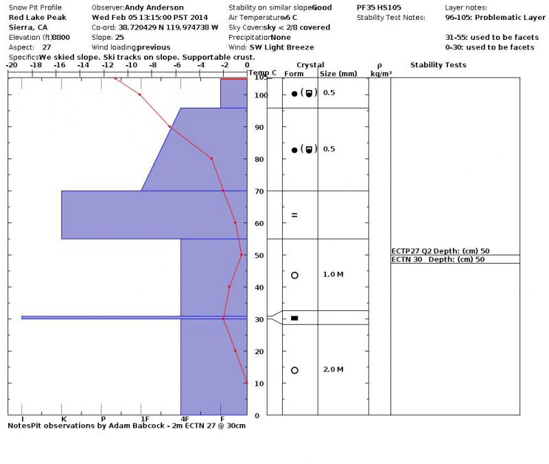 Location Name: Red Lake Peak Region: Carson Pass Area Date and time of observation: Wed, 02/05/2014 - 13:15 |