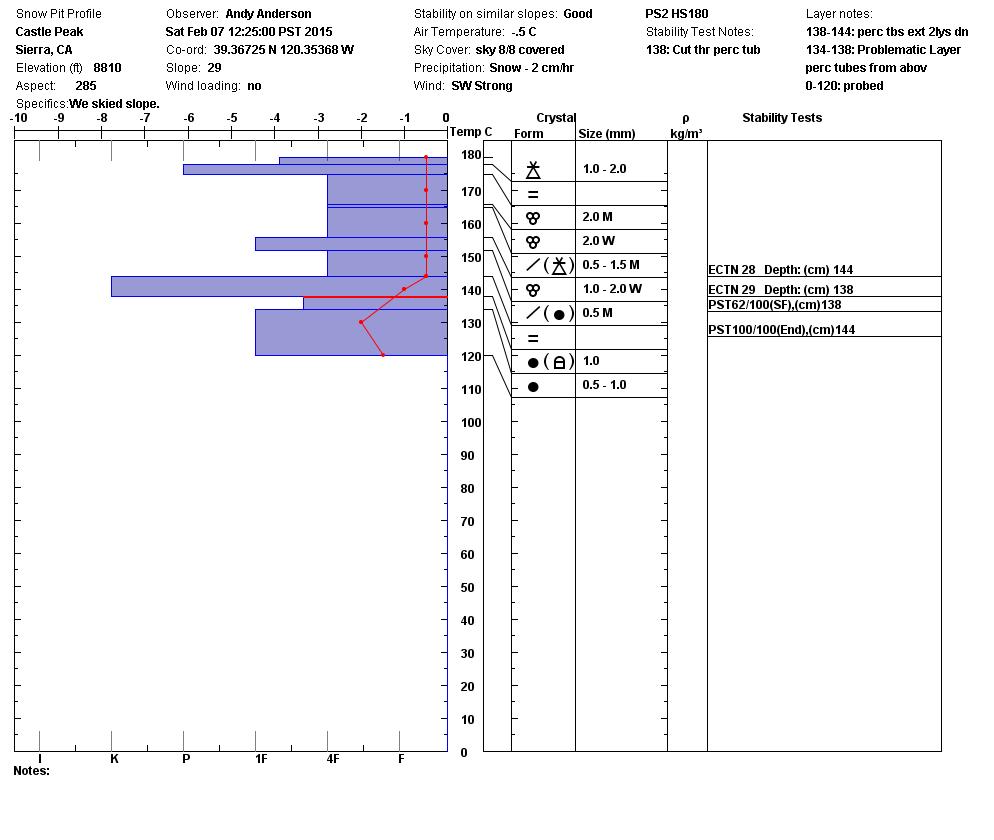 Snowpit is from a W aspect on the NW side of Castle @ 8800 ft.