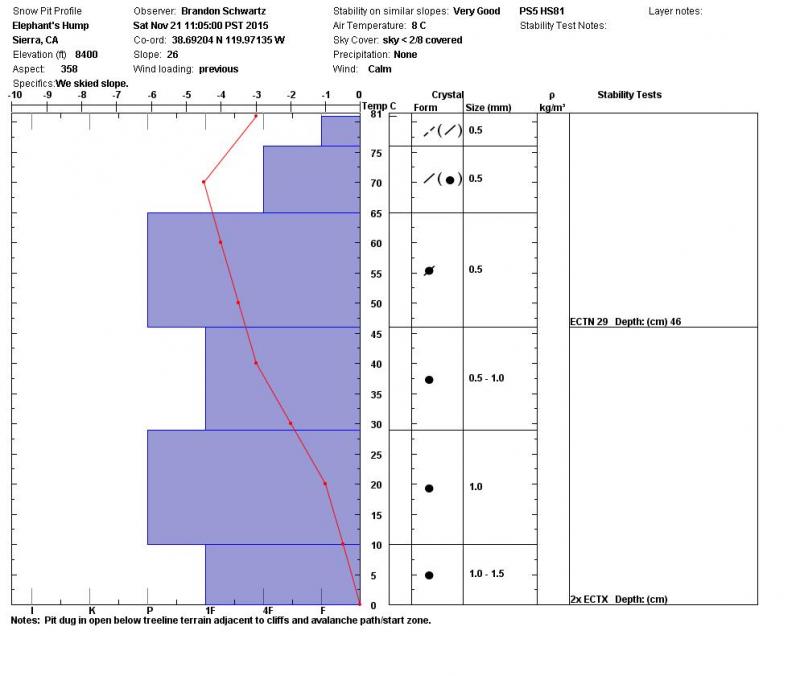 Location Name: Elephant's Hump Region: Carson Pass Area Date and time of observation: Sat, 11/21/2015 - 11:05 |