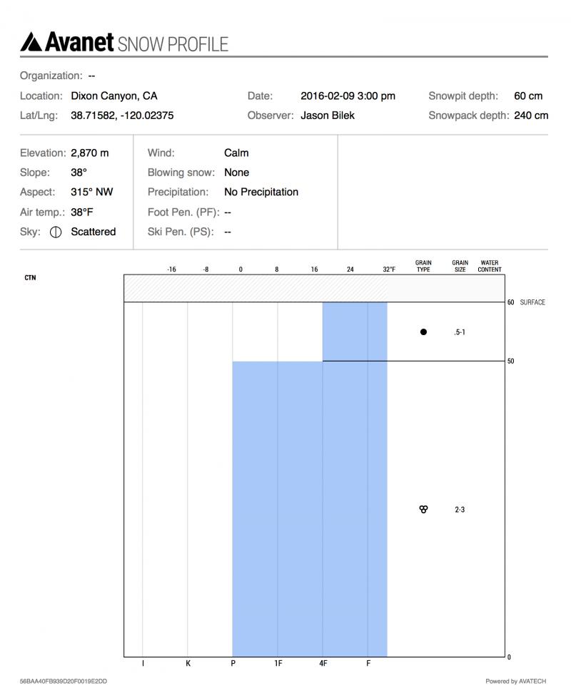 Location Name: Caples Lake Region: Carson Pass Area Date and time of observation: Tue, 02/09/2016 - 12:00 |