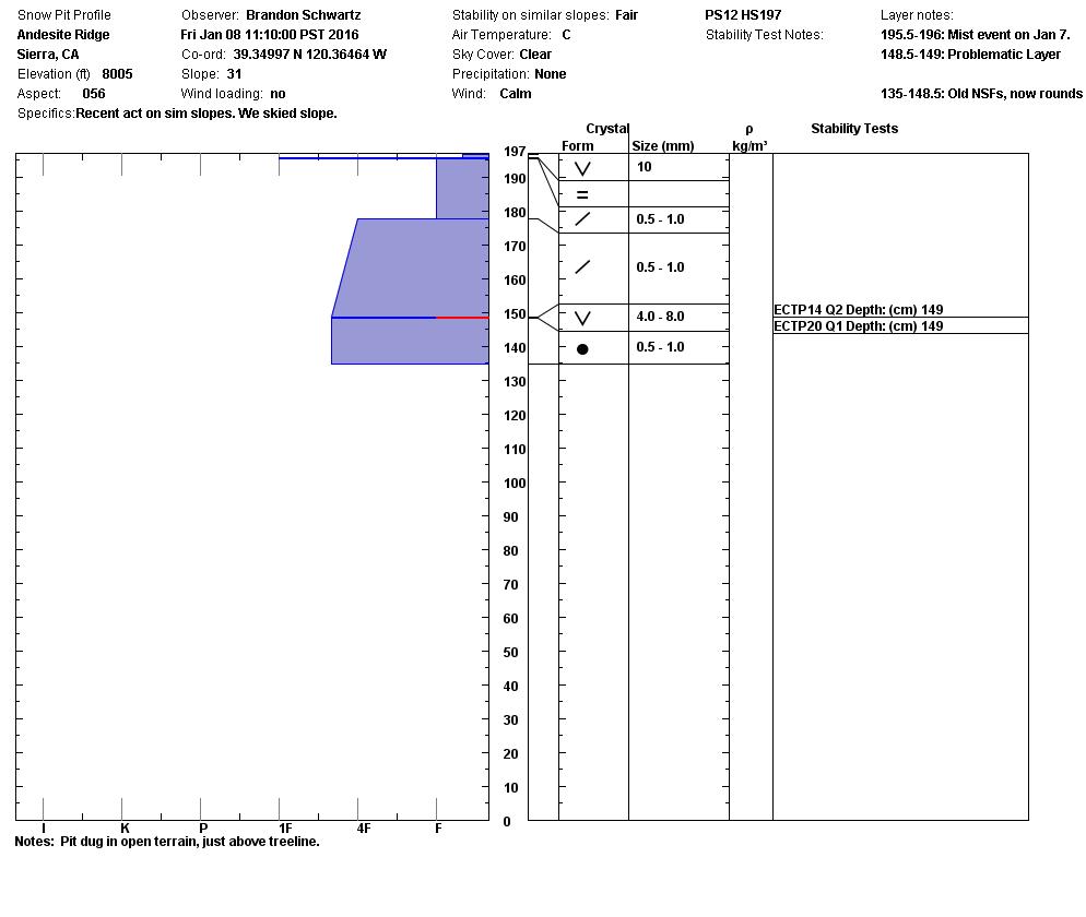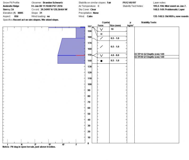Location Name: Andesite Ridge Region: Donner Summit Area Date and time of observation: Fri, 01/08/2016 - 11:00 |