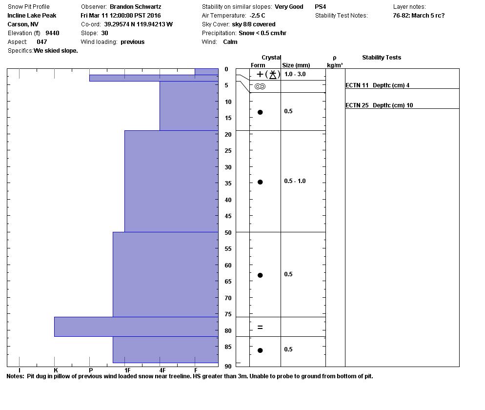 Location Name: Incline Lake Peak Region: Mount Rose Area Date and time of observation: Fri, 03/11/2016 - 12:00 |