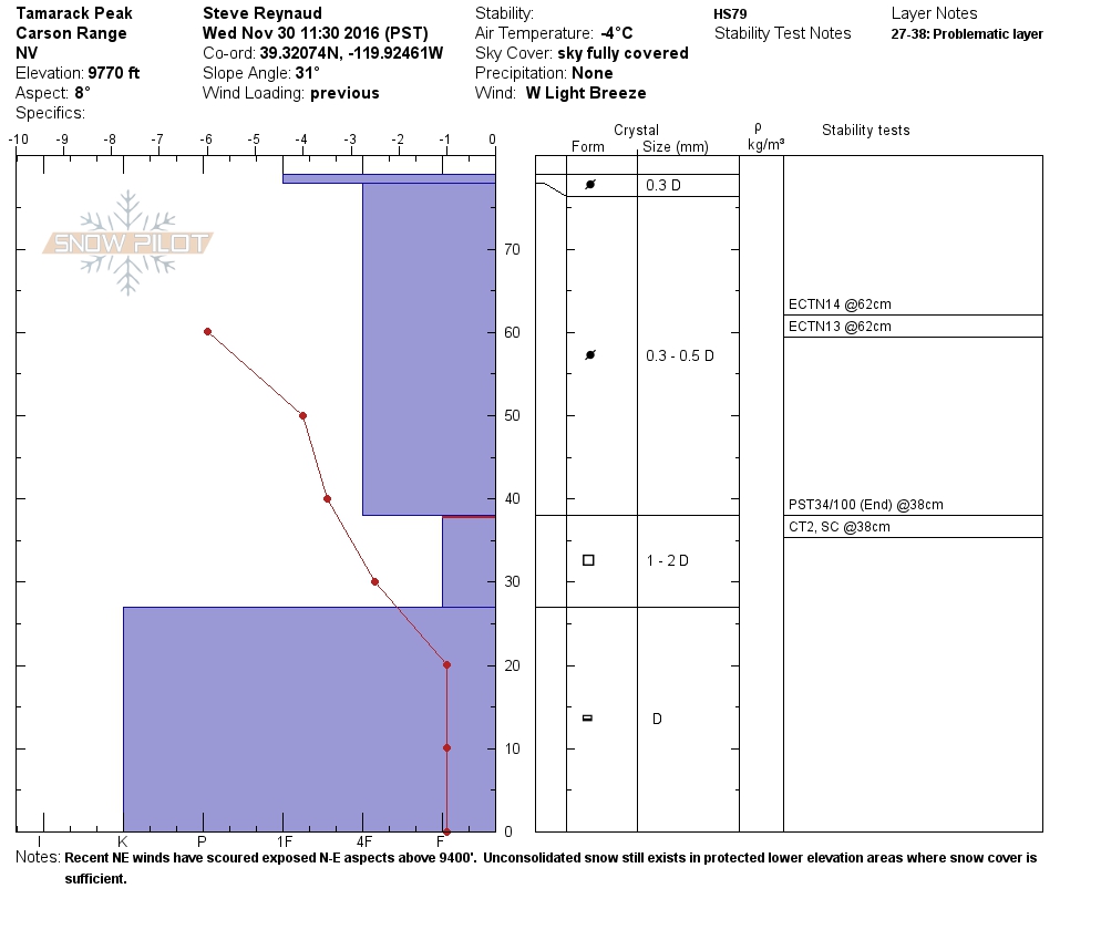 Location Name: Tamarack Peak Region: Mount Rose Area Date and time of observation: Wed, 11/30/2016 - 11:30 |
