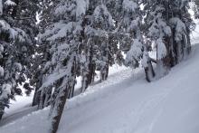 Above the Skiers left trees in Dead tree bowl Carson Pass Area |