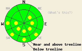 January 27, 2009 at 7:47 Near and above treeline, avalanche danger is LOW with pockets of MODERATE danger on SE-S-SW-W-NW aspects, 37 degrees and steeper. Below treeline, avalanche danger is LOW. |