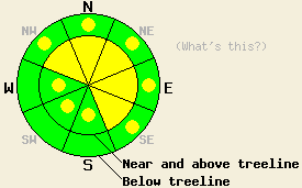 December 20, 2008 at 7:45 Near and above treeline, avalanche danger is LOW with pockets of MODERATE danger on NW-N-NE-E aspects, 35 degrees and steeper. Below treeline, avalanche danger is LOW with pockets of MODERATE danger on NW-N-NE-E aspects, 35 degrees and steeper. |